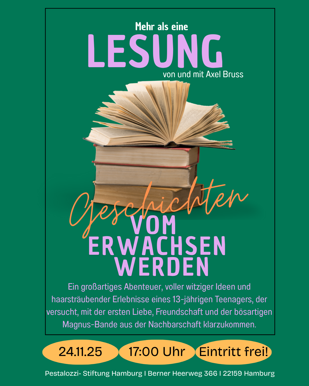 … am 20.11.2025 in der Begegnungsstätte in Berne, nur mit Anmeldung bis zum 18.11.25 unter anmeldung.berne@pestalozzi-hamburg.de oder 040 644 104 20